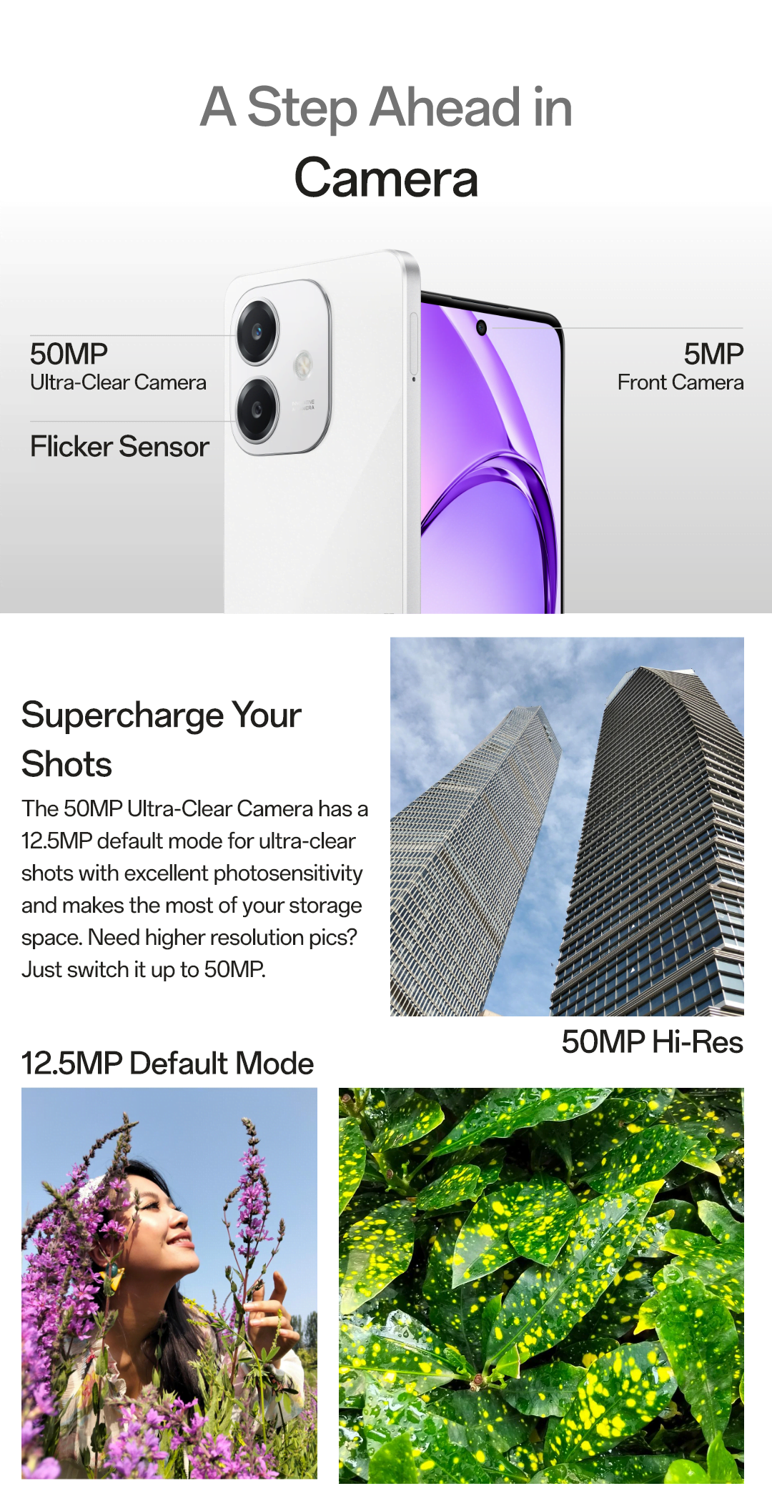 ● Main camera: Ultra-Clear camera: 50MP; f/1.8; FOV 76°; 5P lens; AF; open-loop focus motor