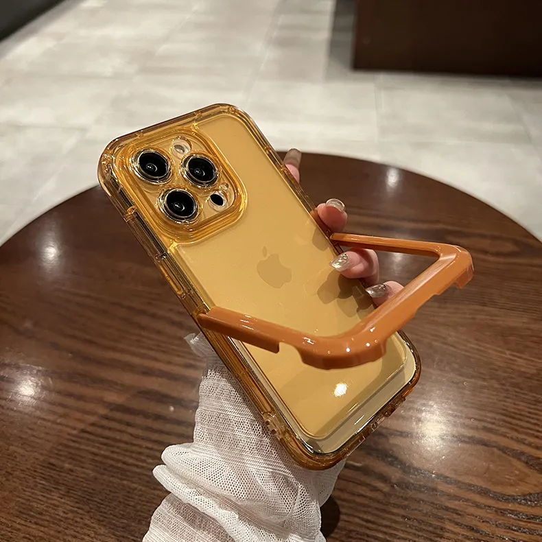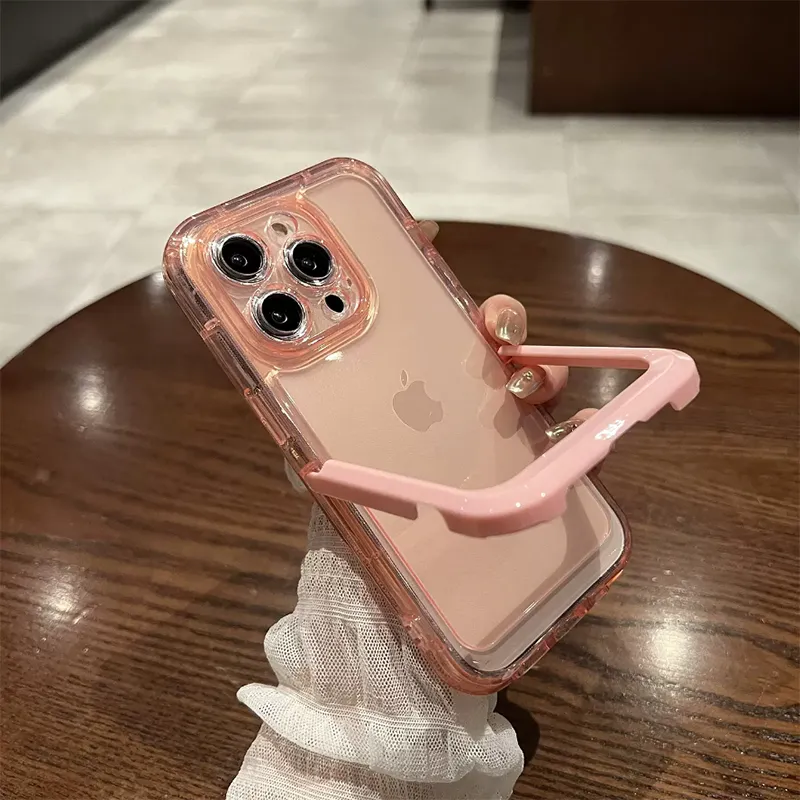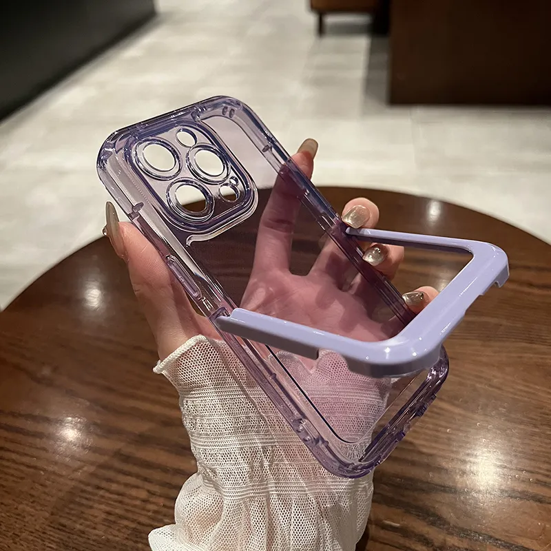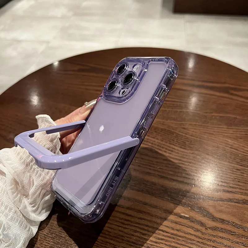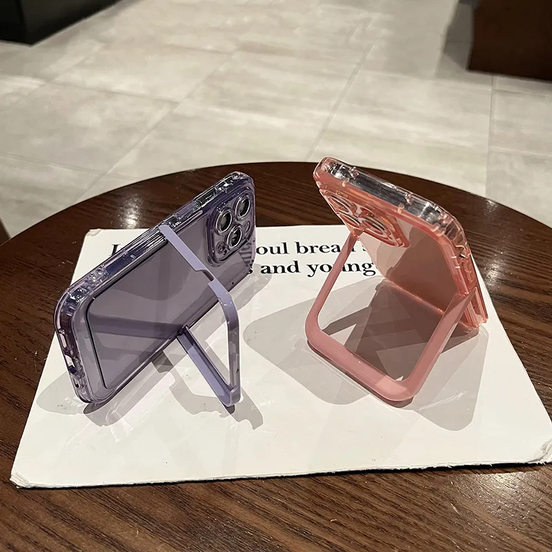 CrashStar Transparent Silicone Soft Shockproof Phone Case With Folding Invisible Stand For iPhone 17 16 15 14 Pro Max Plus 13 12 Pro Max 11 Fashion Simple Phone Casing Clear Anti-fall Cover With Full Cover Lens Camera Protection Hot Sale