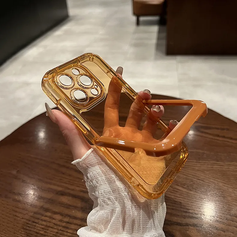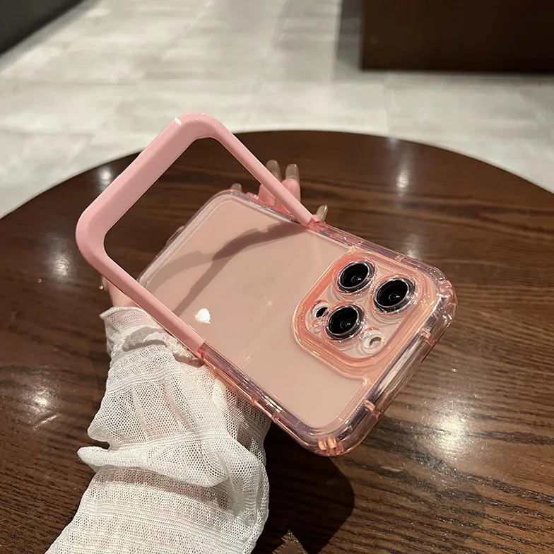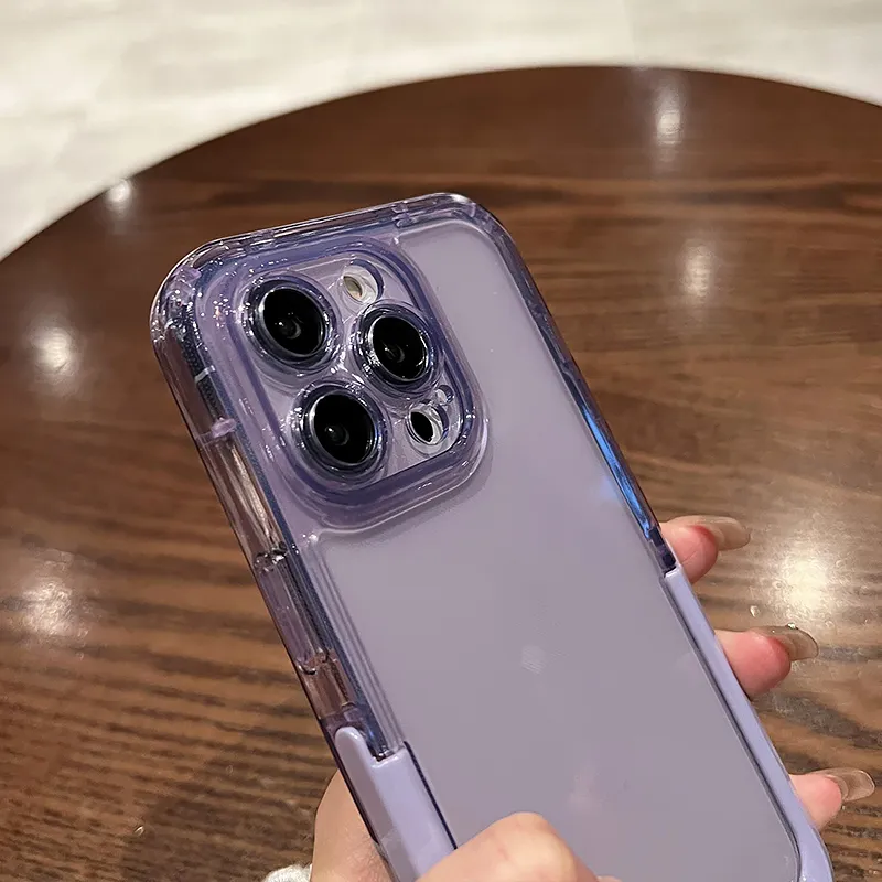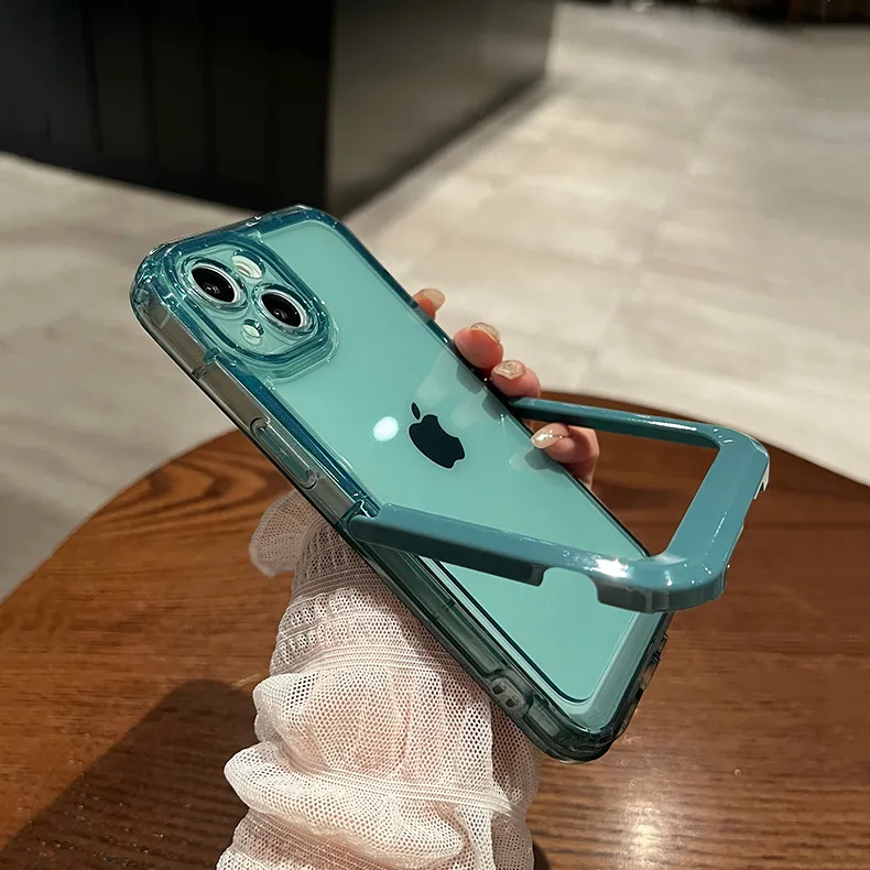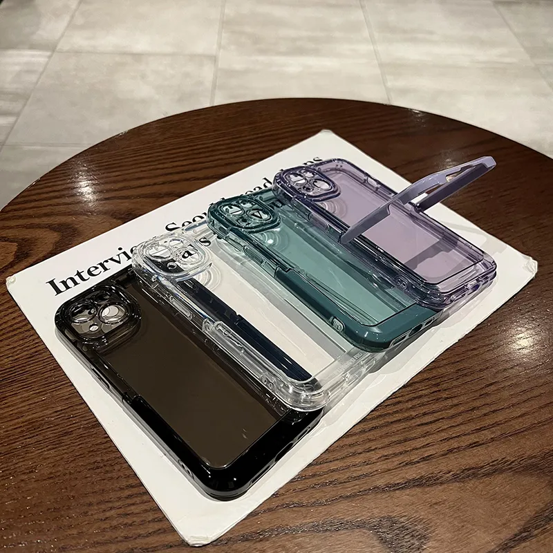 CrashStar Transparent Silicone Soft Shockproof Phone Case With Folding Invisible Stand For iPhone 17 16 15 14 Pro Max Plus 13 12 Pro Max 11 Fashion Simple Phone Casing Clear Anti-fall Cover With Full Cover Lens Camera Protection Hot Sale