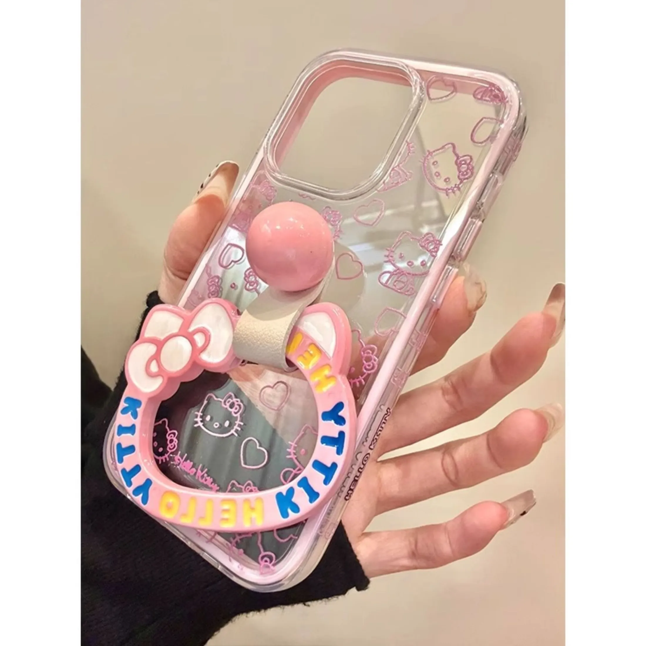 Creative Kitty Cat Ring Phone Case for Apple 16e/15 pro Max 14 plus 13 pro 12 New 11 pro Max Women's Protective Silicone Shell