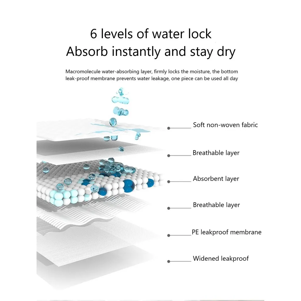 -The top layer of non-woven fabric absorbs water quickly, refreshes and deodorizes.