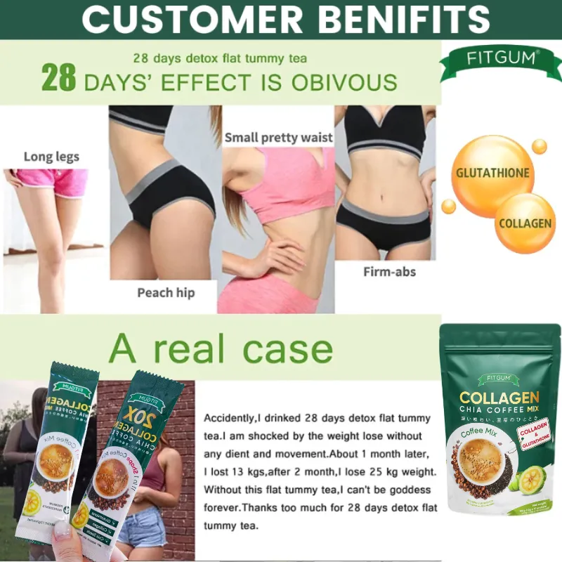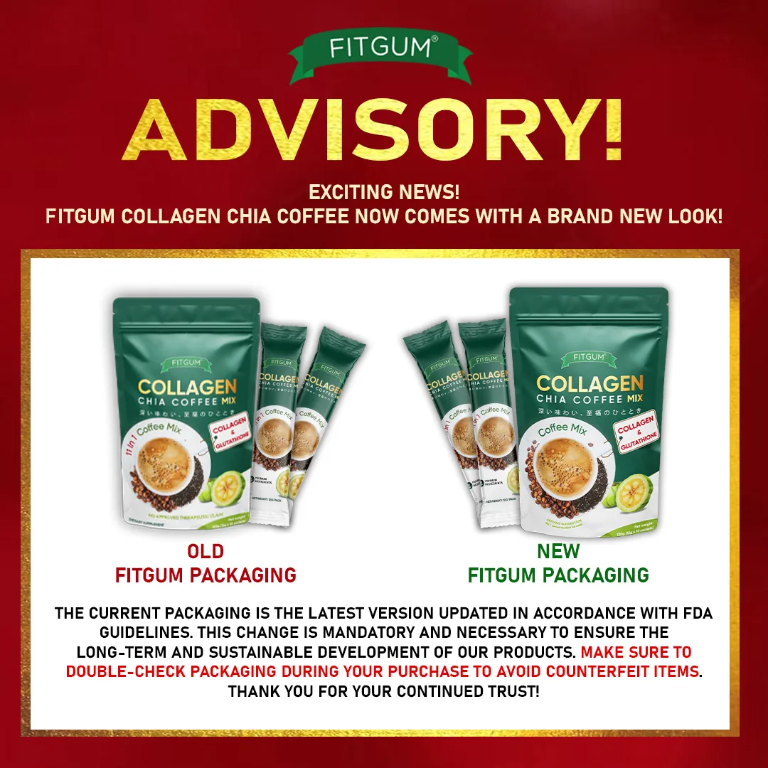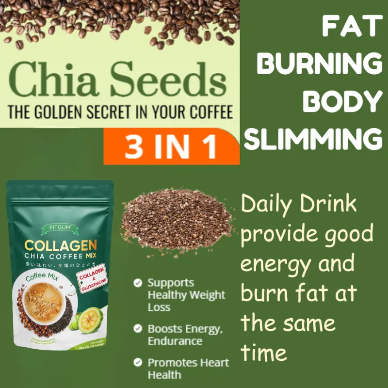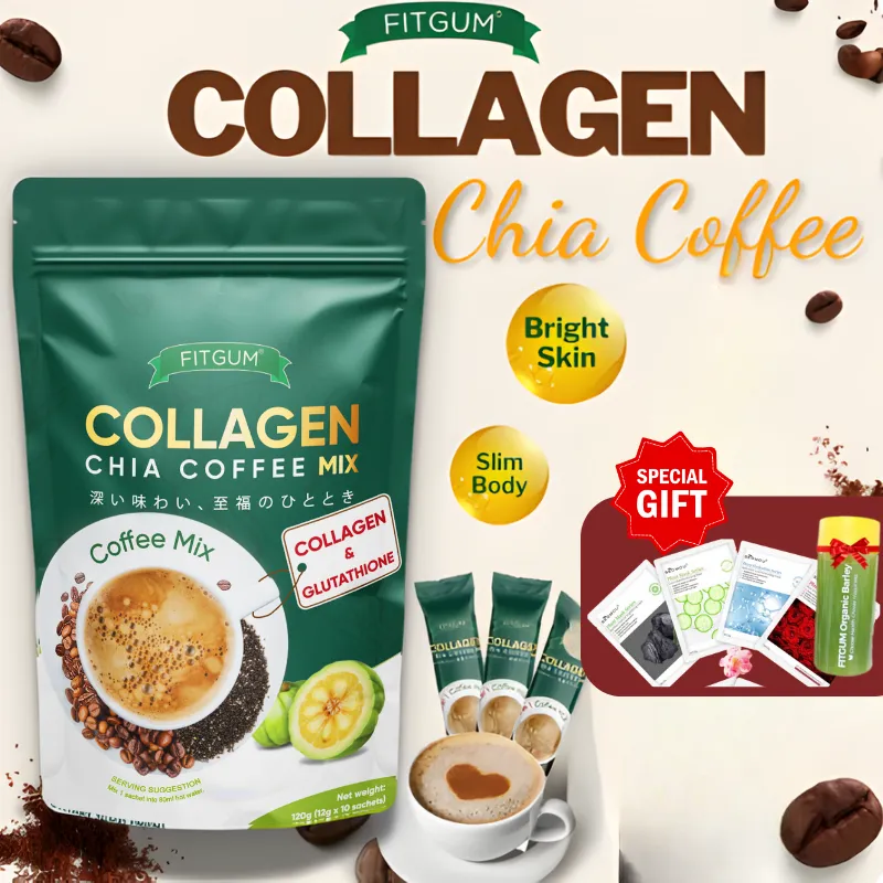 Fitgum Collagen Chia Coffee mix With Collagen & Glutathione Anti-Aging Whitening Skin Organic 10Pack FDA approved