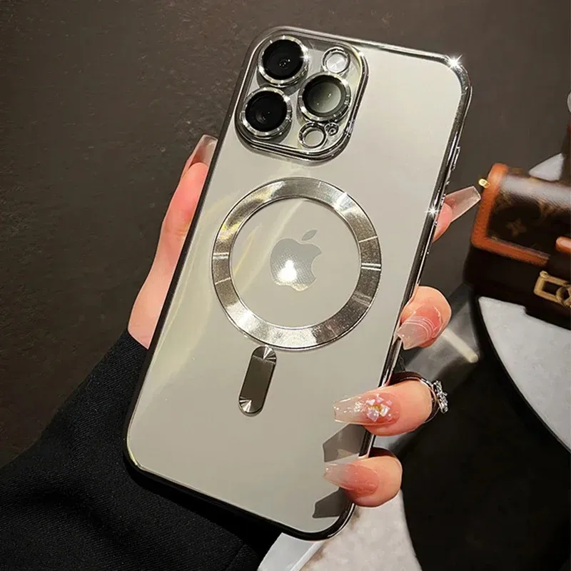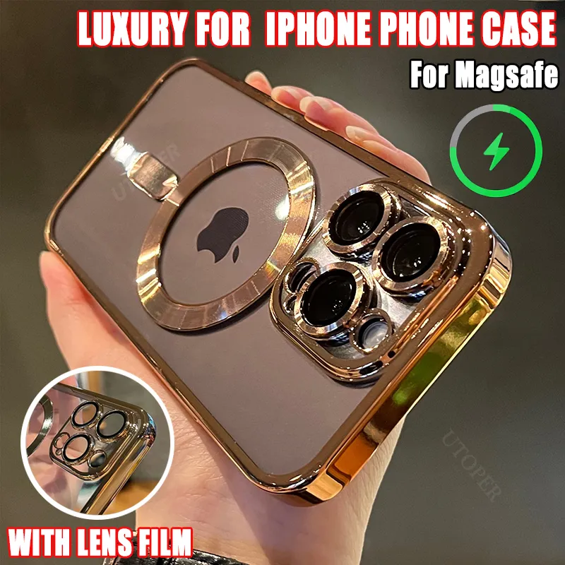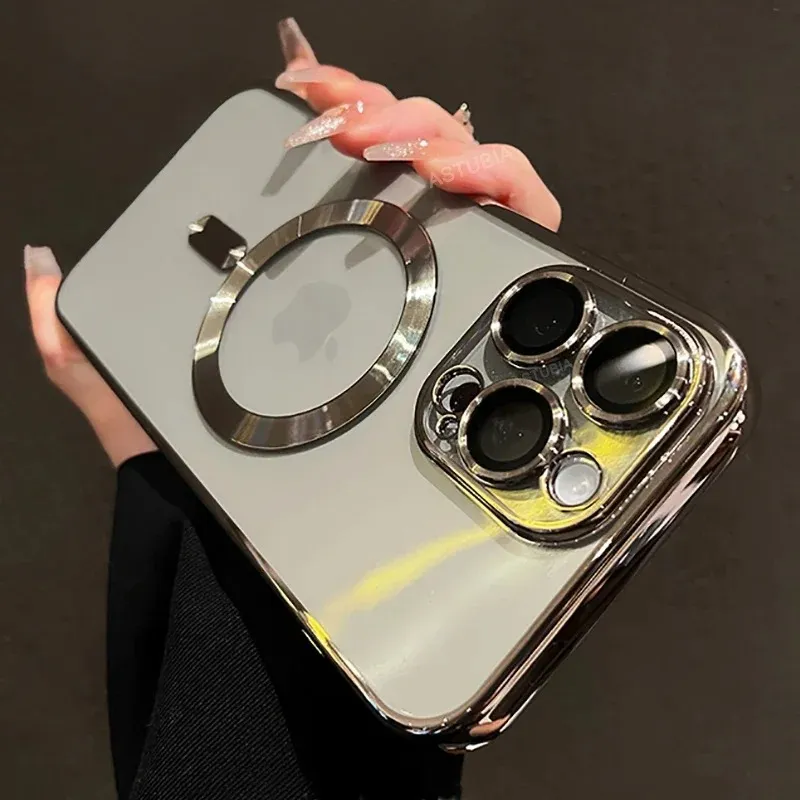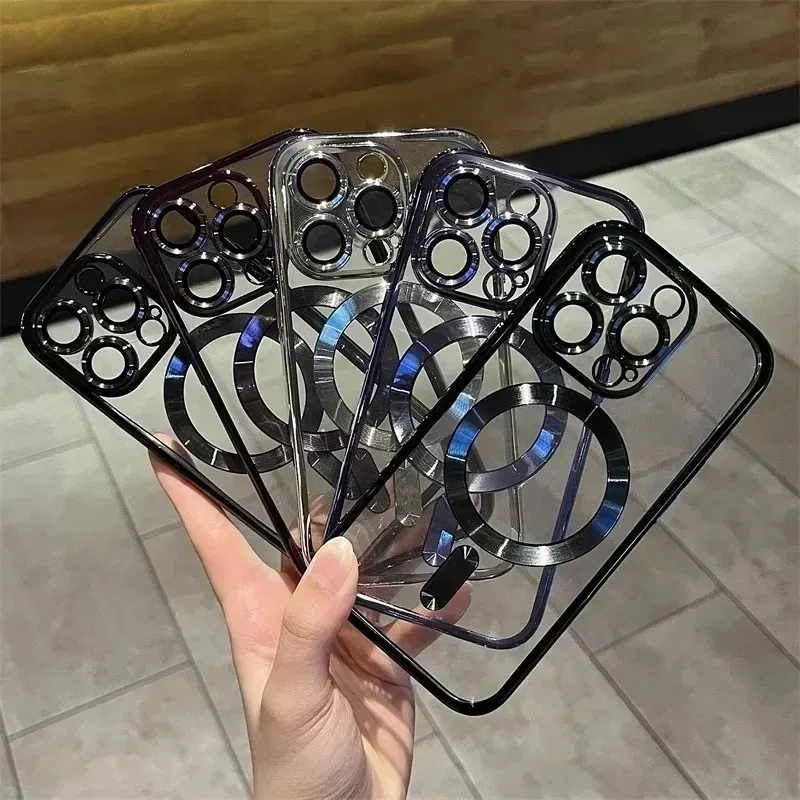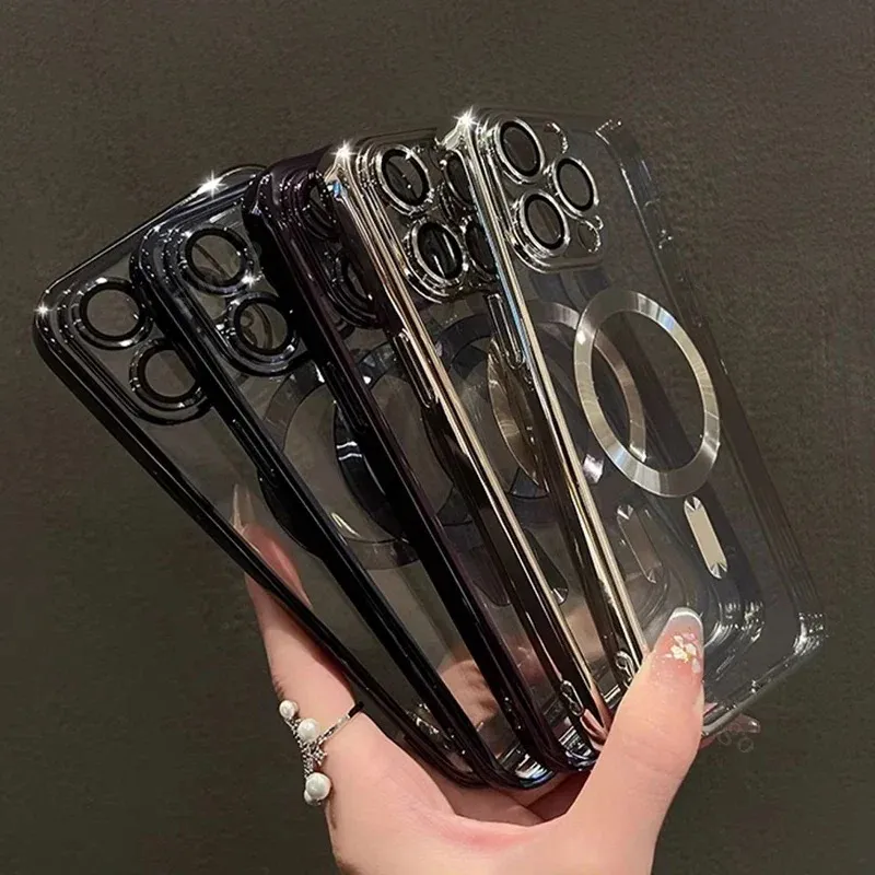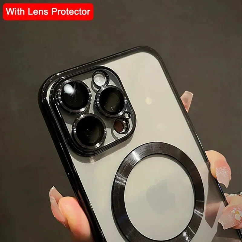 Magsafe Luxury Clear Wireless Charge Case for iPhone 15 17 14 13 12 11 16 Pro Max Plus with Lens Protect Magnetic Silicone Cover