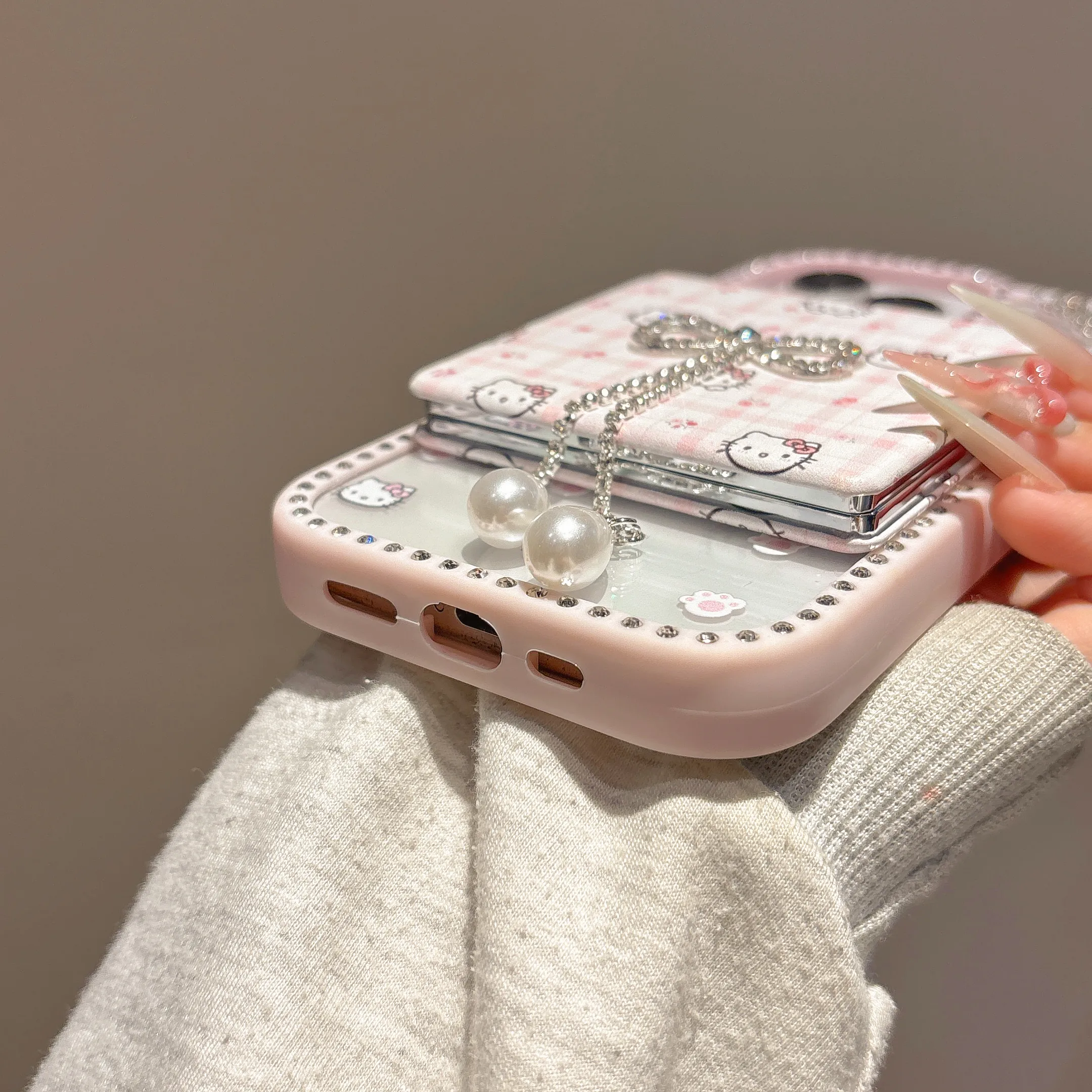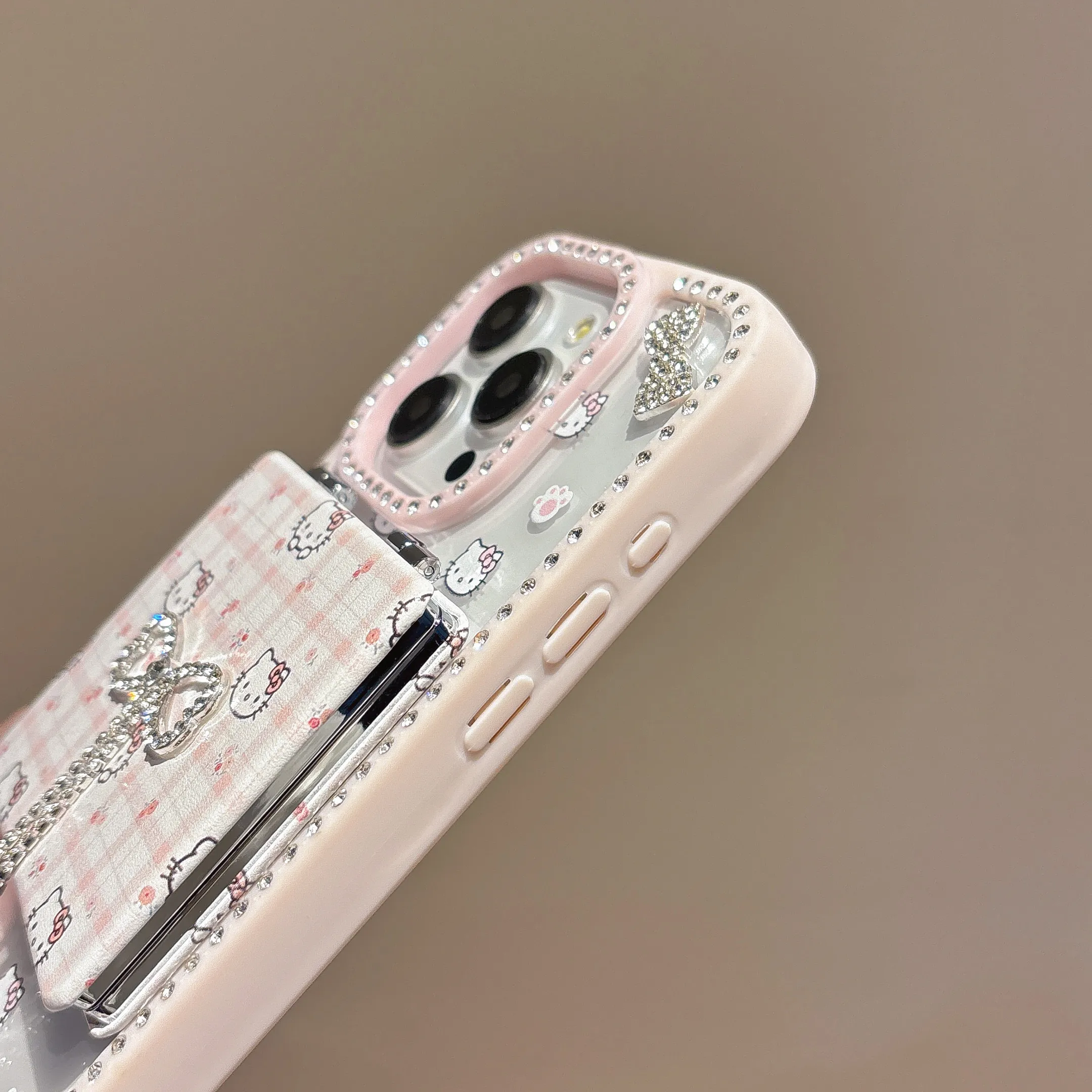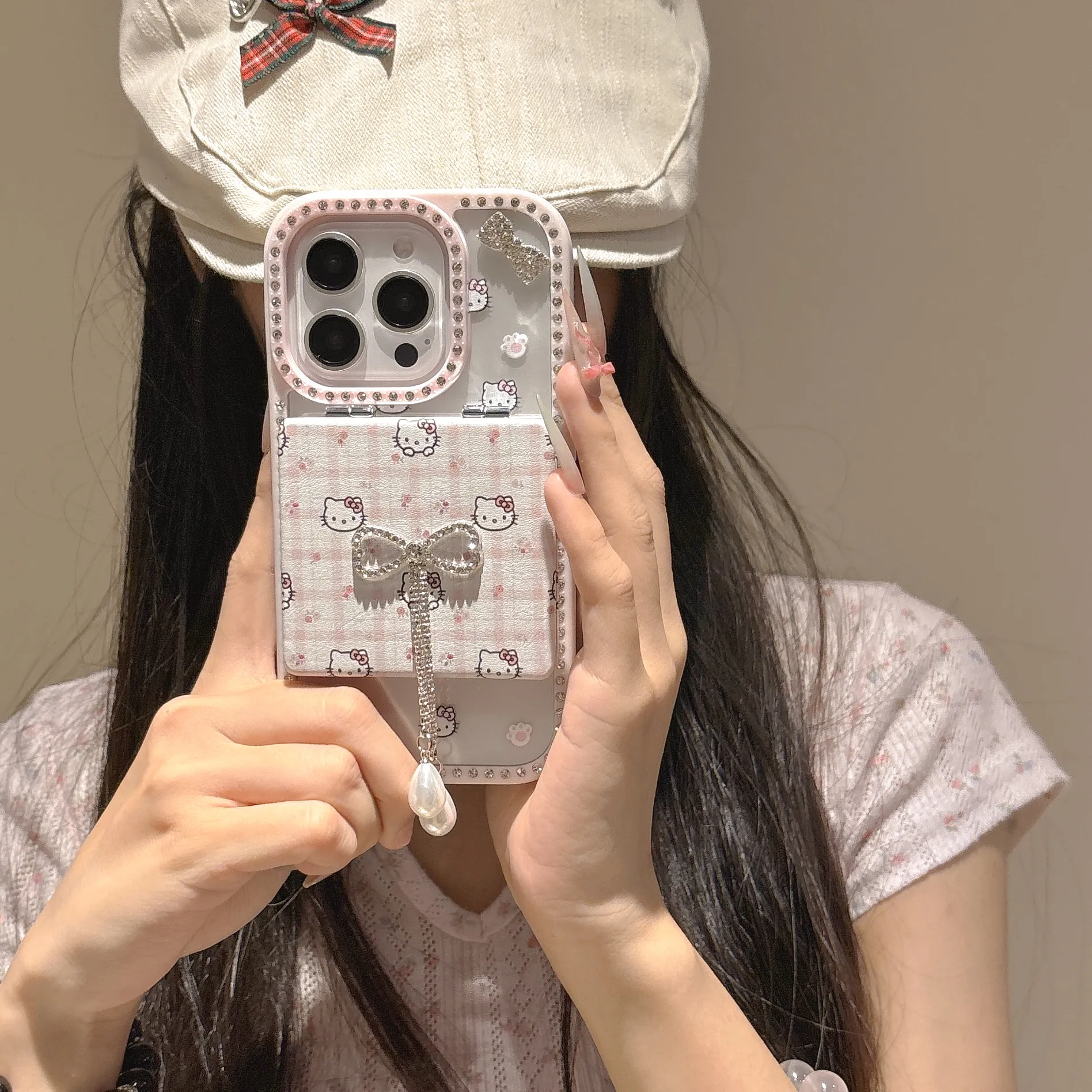 Ins Style Cute KT Cat Apple 16 pro Phone Case New Model 17 pro Max Women's iPhone 15 pro High-End Feeling 14 Best-Selling 13 Re-Make Mirror Protection Case 12 Sparkling Diamond Edge 17 Air