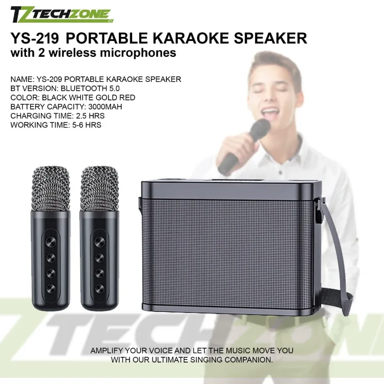 【PORTABLE KARAOKE MACHINE】: The YS-209 Bluetooth karaoke speaker is lightweight, compact, and portable size and lightweight design are perfect for people who don't want to make their living space cluttered. If you’re going to be putting on a show in the backyard or bringing your tunes into the great outdoors, this karaoke machine you’re going to want by your side. The hand held short strap means you can grab it and go, no wheels are required.