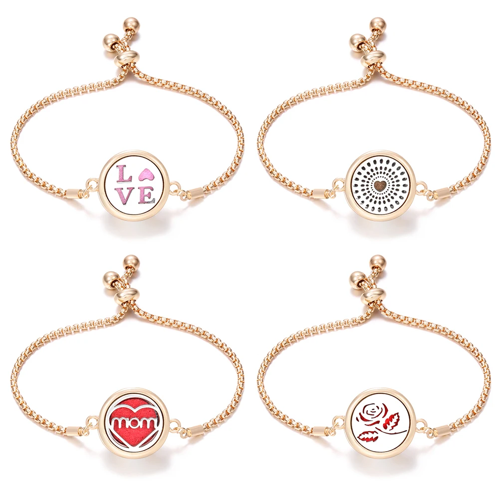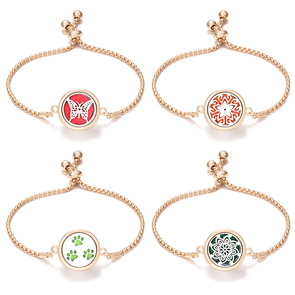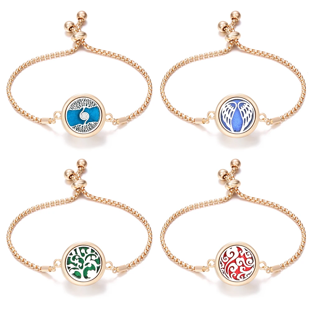 New Trendy Golden Angel Wings Flowers Women Aromatherapy Bangle Essential Oil Diffuser Perfume Lockets Fine Bracelet Accessories
