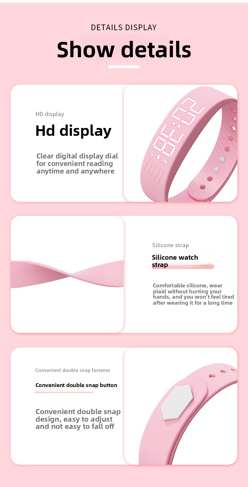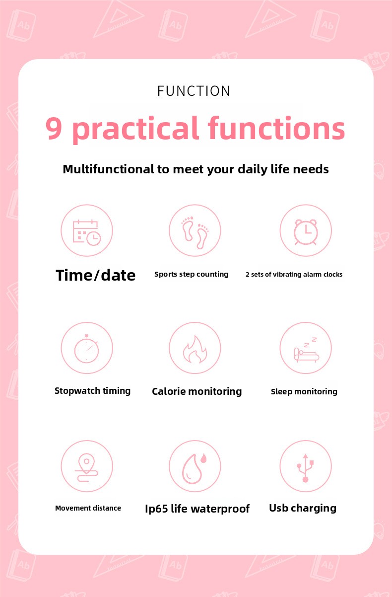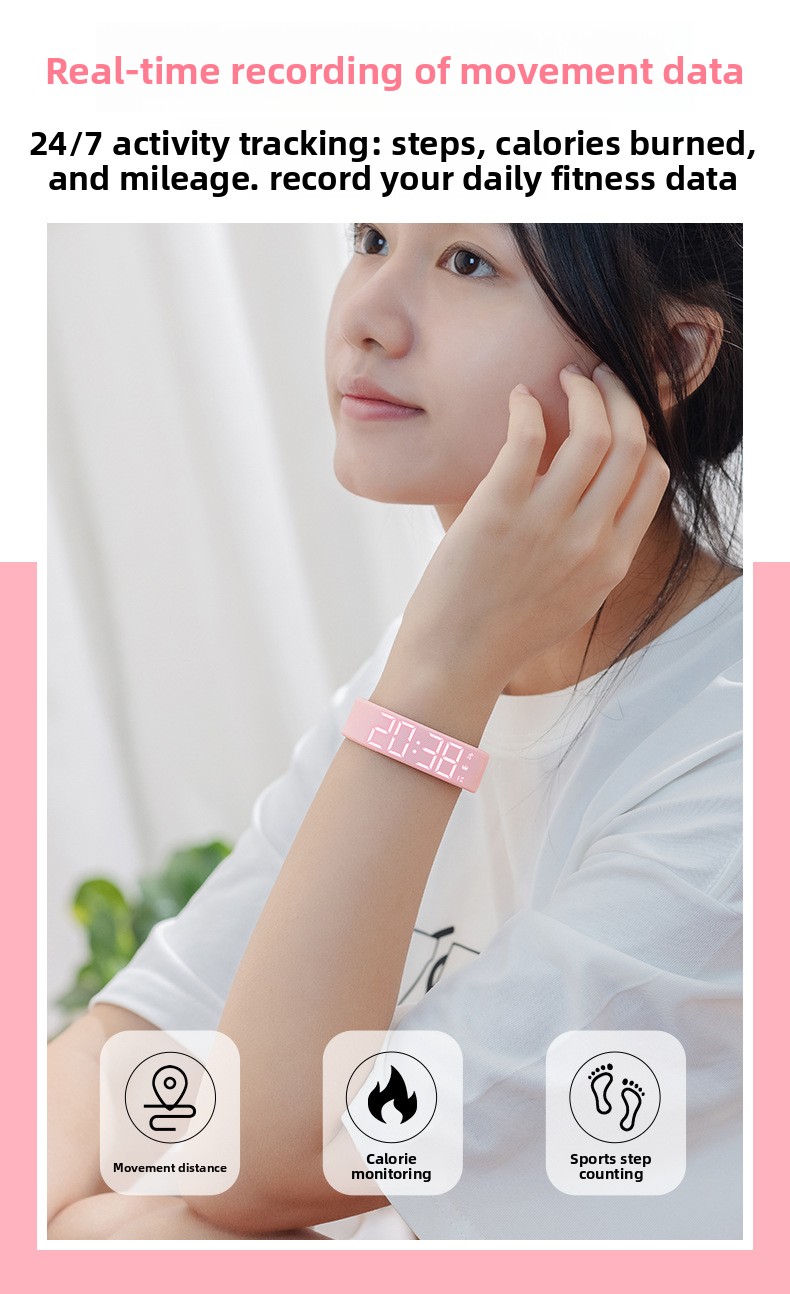 Monitor your daily movement with precision using this intelligent fitness tracker designed for active students. Features include step counting to track physical activity, a silent vibration alarm for discreet wake-ups, and a built-in stopwatch for timing workouts and activities.