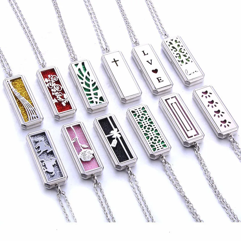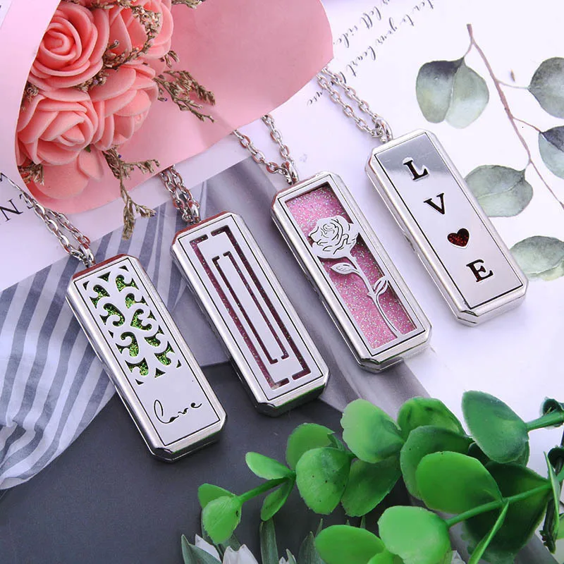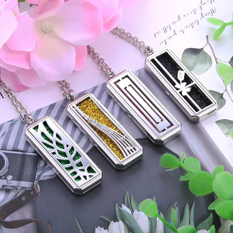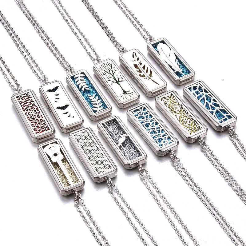Tree of Life Square Stainless Steel Magnetic Aromatherapy Diffuser Necklace Jewelry Perfume Essential Oil Pendant Necklace